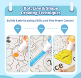 Featuring a unique dot–line–shape learning system, each page gently introduces foundational drawing techniques while leaving plenty of room for creativity. From tracing dots and connecting lines to completing shapes and free-style doodling, kids build skills naturally — without pressure.