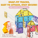🧲 Strong, Safe & ExpandableBuilt tough for everyday play with waterproof, scratch-resistant dual-sided printing. Clicks smoothly into place and integrates perfectly with other major magnetic tile brands.
