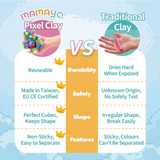 Introducing Mamayo Pixel Clay – the soft, smart clay that never dries, never makes a mess, and helps kids create, learn and imagine in endless ways. Designed to go from flat to 3D, it’s perfect for creative building, fine motor development and STEAM learning through play.