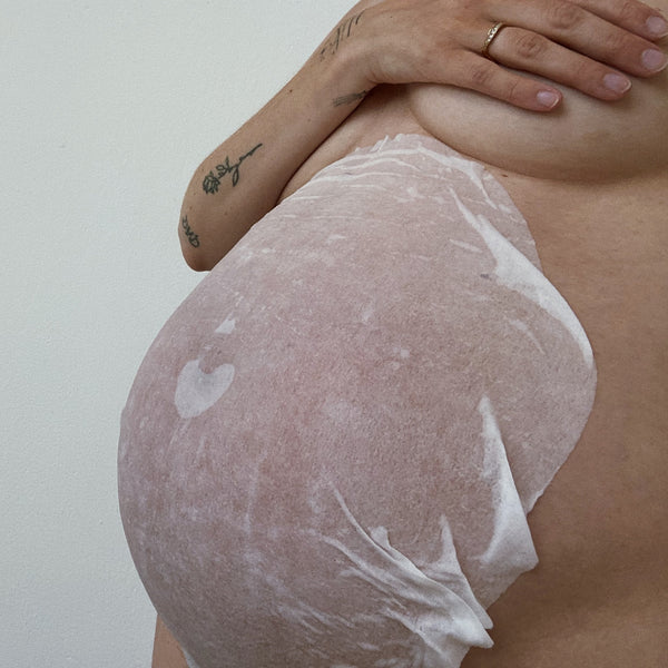 Cooling and ultra-moisturizing belly sheet masks designed to hydrate and care for the skin on your pregnant belly—before, during, and after pregnancy.