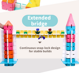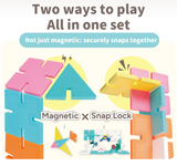 Powered by a patented Snaplock™ system, these tiles combine strong magnets, snap-lock joints, and unique snowflake connectors to create builds that actually stay standing. The result? More confidence, longer focus, and frustration-free play — even for younger hands.
